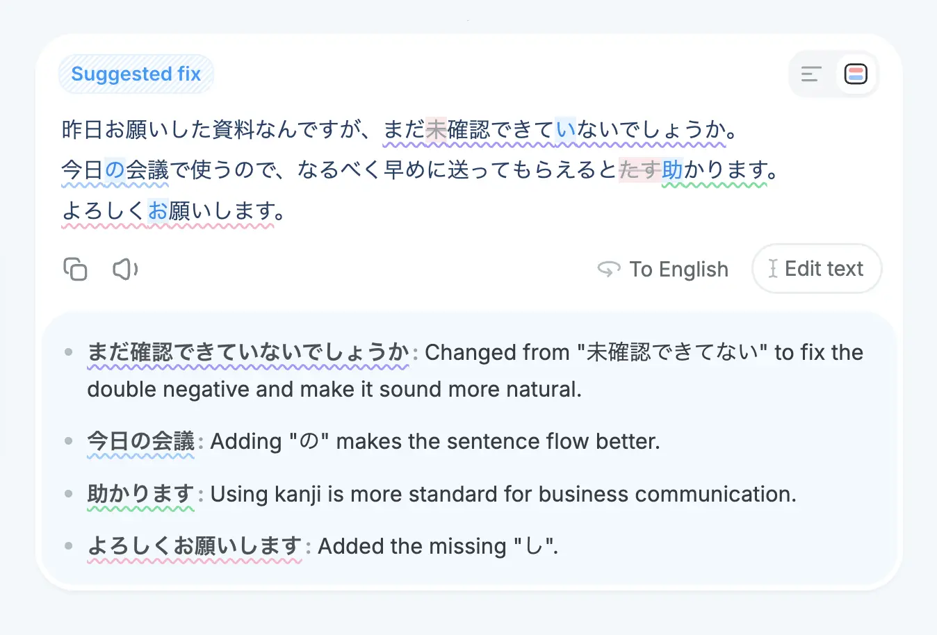 We've added proofread mode to Nani Translate, one of the most requested features.